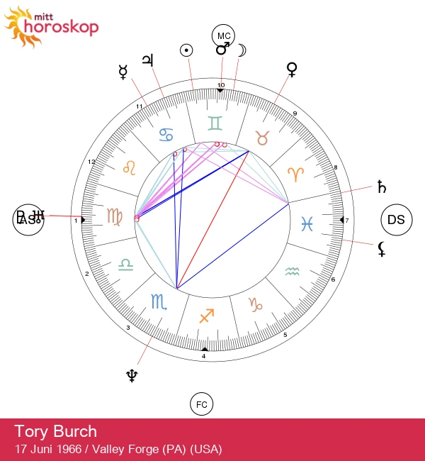 Velkommen til den fargerike verdenen til Tory Burch, født 17. juni 1966, i sjarmerende Valley Forge, Pennsylvania! Denne livlige tvillingen er kjent for sin sans for mote og innovativt design, som reflekterer dualiteten og kreativiteten som tvillinger representerer. Med sin smittende latter og evne til å knytte bånd med andre, har Tory forvandlet motebransjen til et lerret for sin livlige personlighet. Hennes soltegn gir henne allsidighet, og hvert prosjekt blir et spennende eventyr. La oss, mens vi dykker inn i det astrologiske portrettet av denne ikoniske entreprenøren, avdekke de himmelske påvirkningene som former hennes dynamiske tilstedeværelse og inspirerende reise!